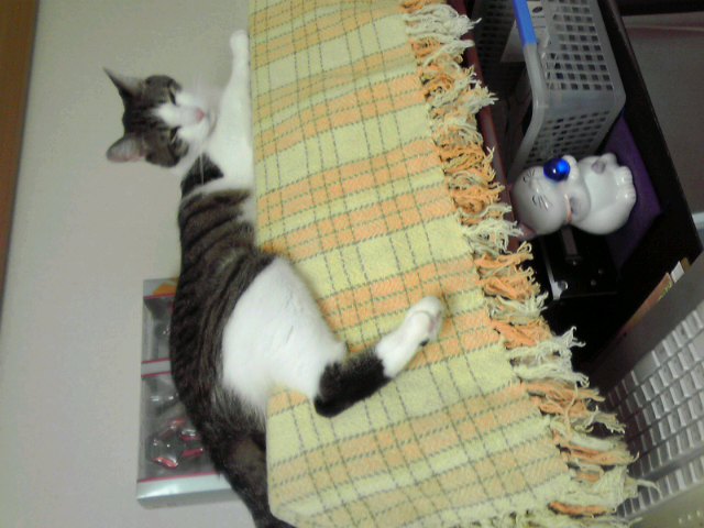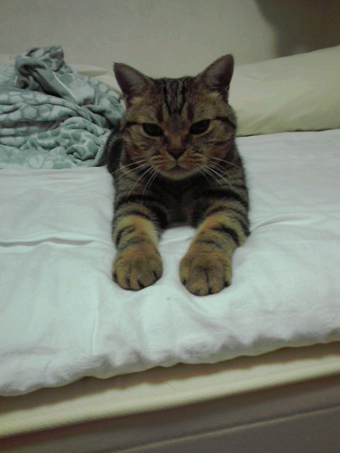 ねーちゃんの寝床で、お寛ぎのごんた兄ちゃん。